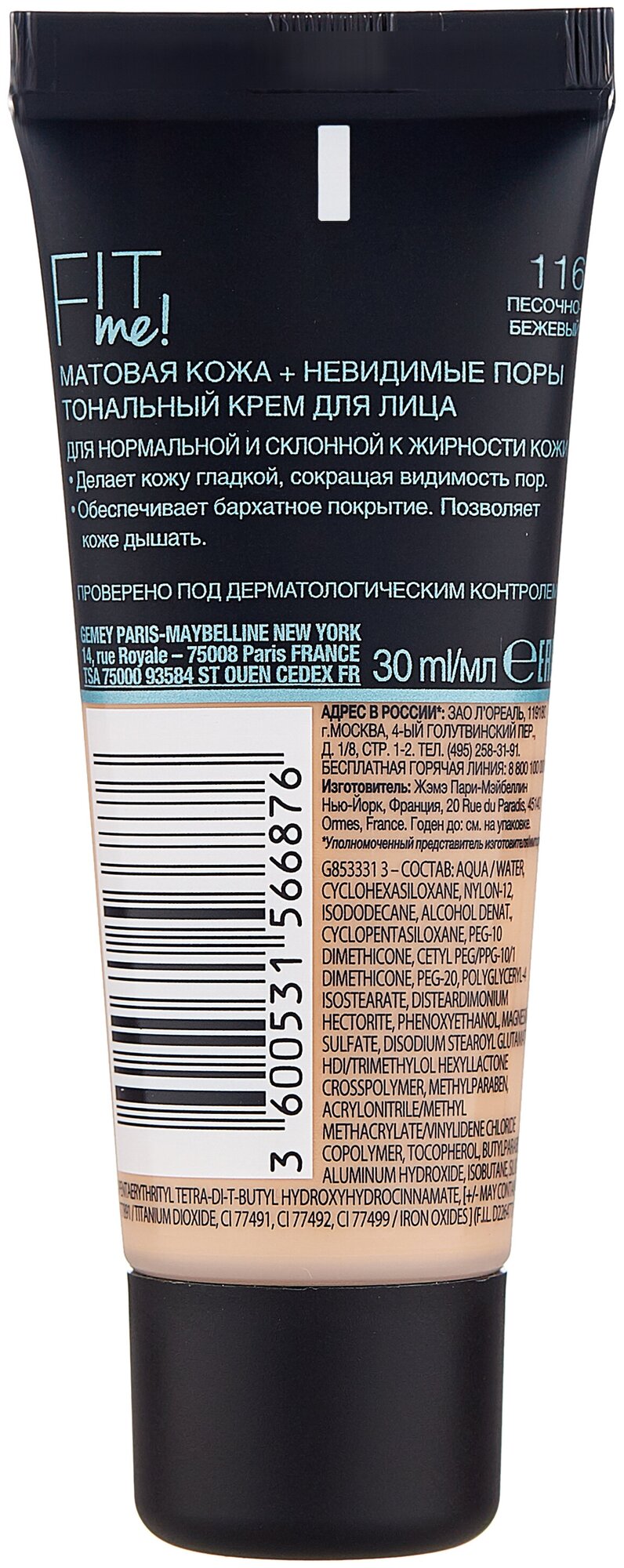 Отзывы на Крем тональный для лица MAYBELLINE FIT ME тон 116 песочно-бежевый