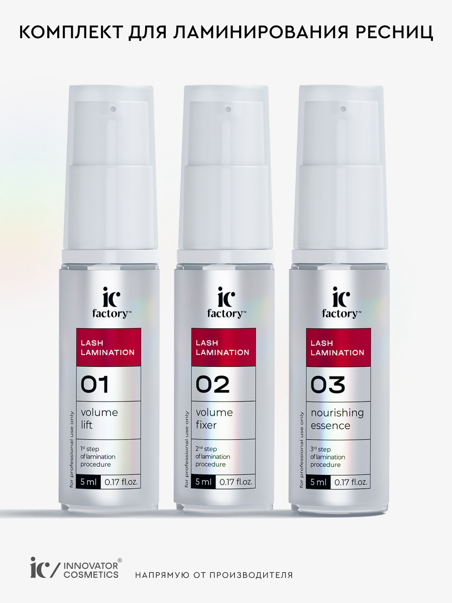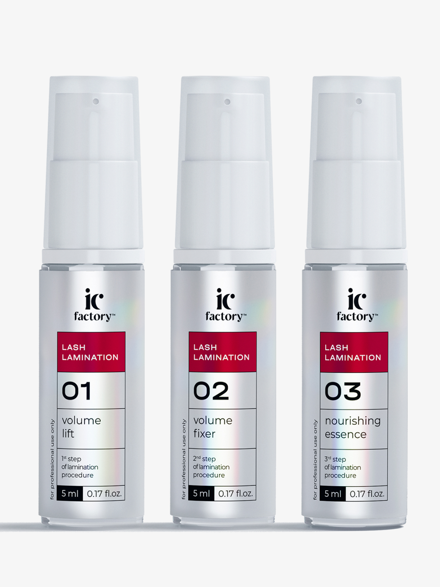 Набор составов #1 LIFT, #2 FIXER, #3 NOURISHING ESSENCE для ламинирования ресниц IC FACTORY, 5 мл