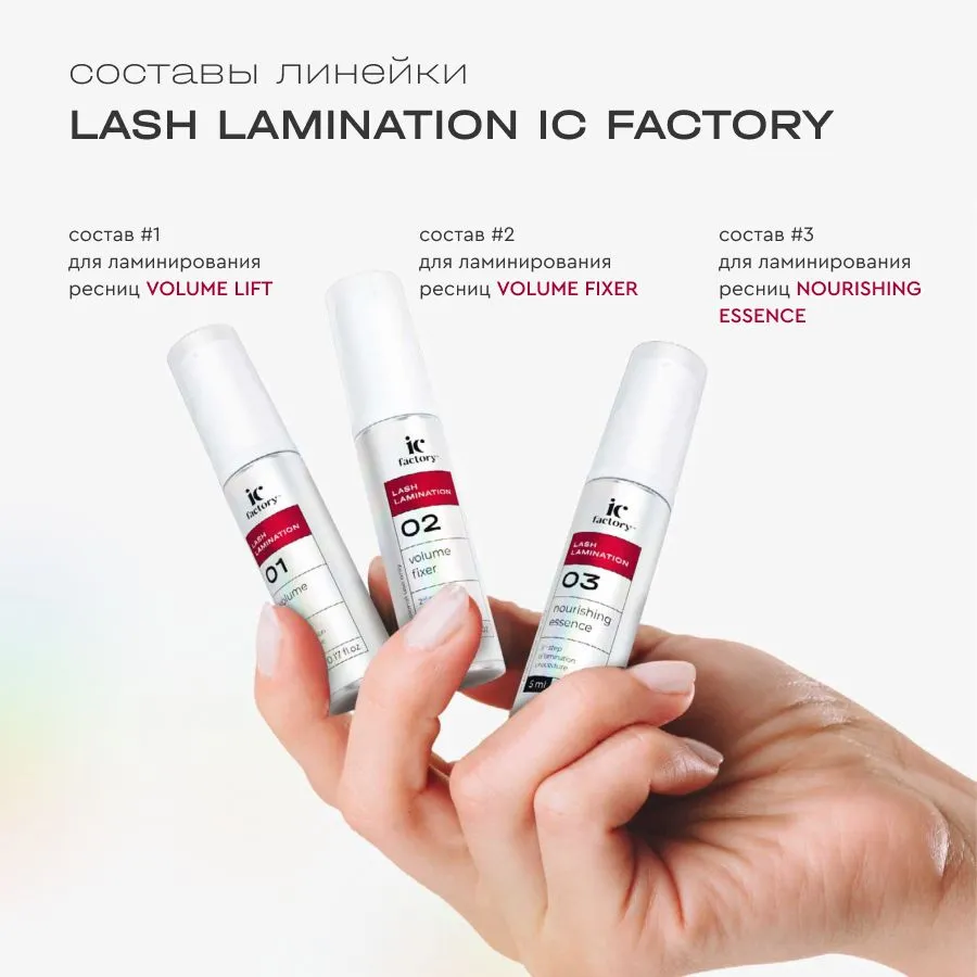 Набор составов #1 LIFT, #2 FIXER, #3 NOURISHING ESSENCE для ламинирования ресниц IC FACTORY, 5 мл