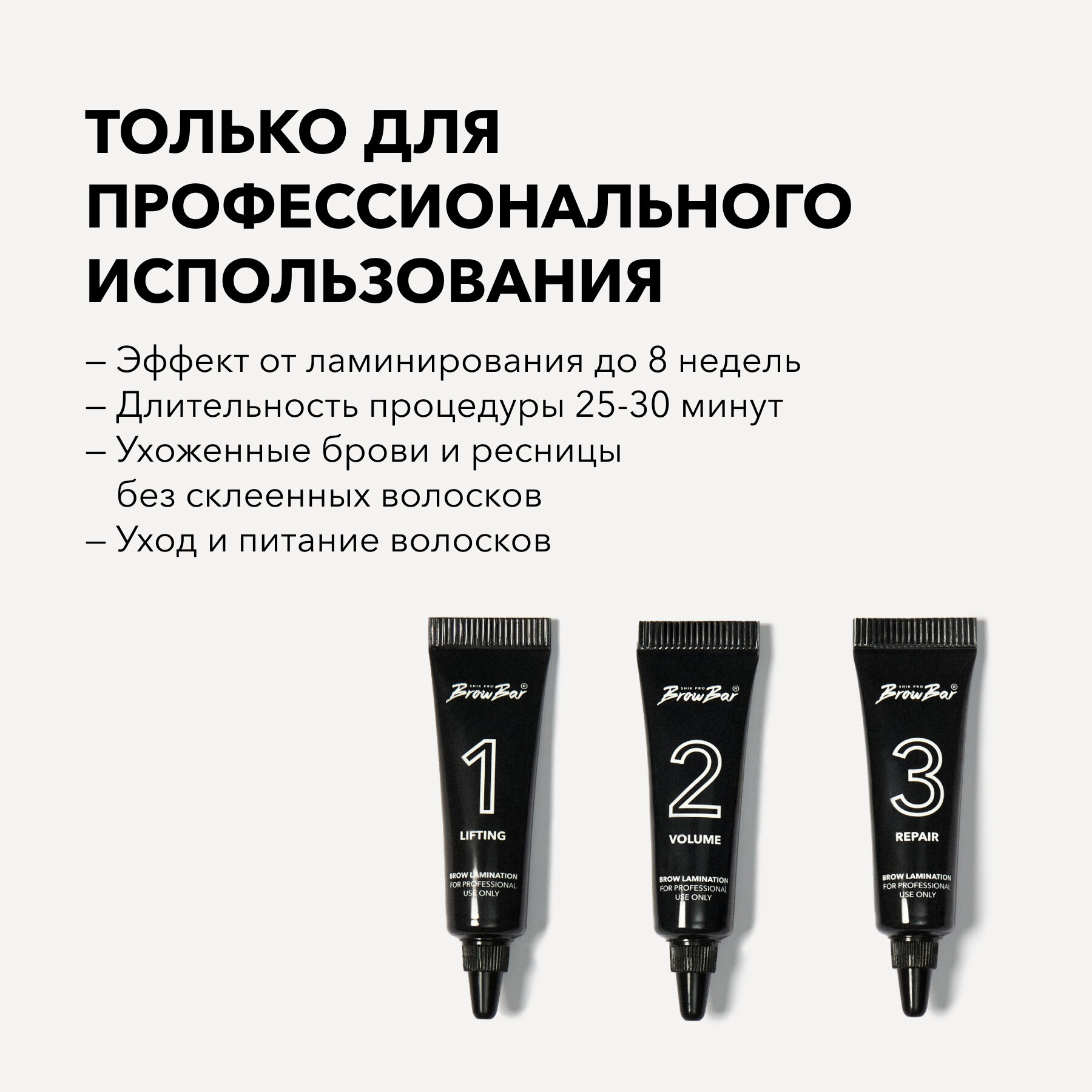 | Способ применения | 1. Нанесите Cleansing lotion от SHIK на ватный диск, очистите кожу и волоски перед процедурой ламинирования бровей. При ламинировании ресниц — используйте очищающую пенку или мусс. 2. Равномерно нанесите на брови или ресницы состав 1 с помощью синтетической кисти. Время выдержки — 4-12 минут в зависимости от структуры волоса. Удалите остатки 1 состава сухим ватным диском. 3. Равномерно нанесите на брови или ресницы состав 2 с помощью синтетической кисти. Время выдержки — 4-12 минут. Удалите остатки 2 состава еле влажным ватным диском. 4. Нанесите с помощью синтетической кисти на брови или ресницы состав 3 для ухода. Оставьте на 24 часа. |