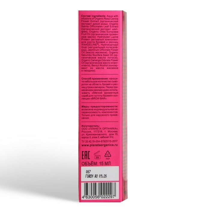 Ухаживающая сыворотка для густоты бровей и ресниц Planeta Organica Brow Bar, 15 мл информация: