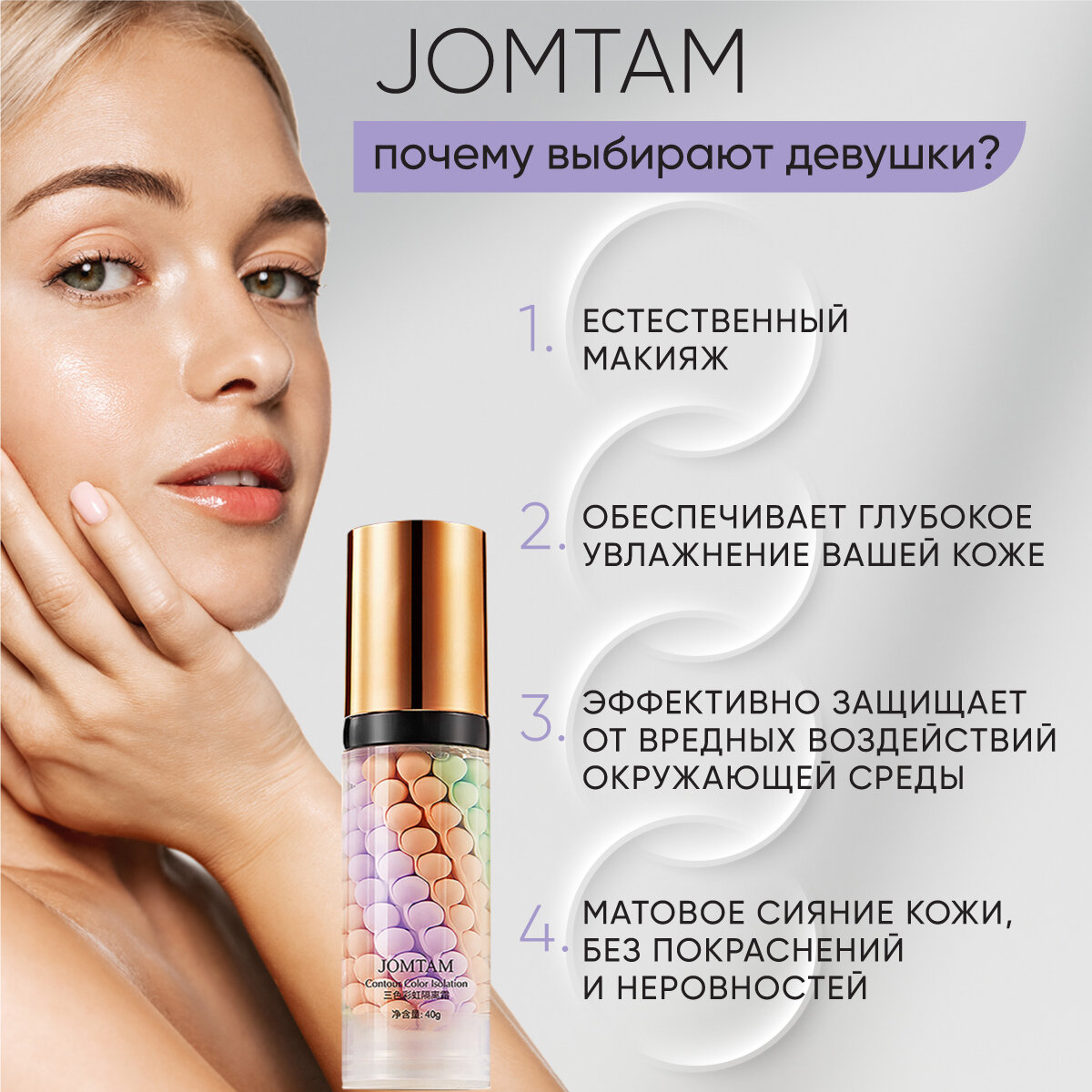 База-праймер под макияж JOMTAM трёхцветная (розовый/зеленый/фиолетовый)