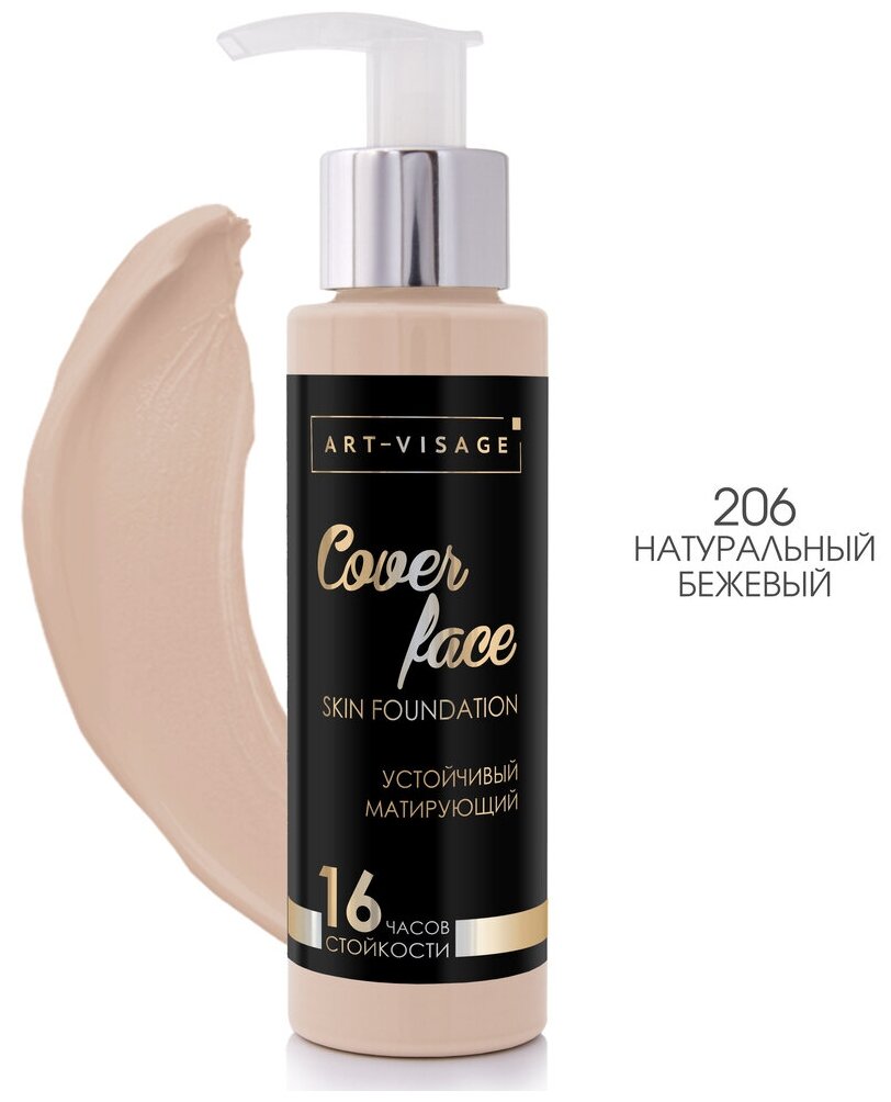 ART-VISAGE Тональный крем матирующий "COVER FACE", 206 натуральный бежевый, 100 мл