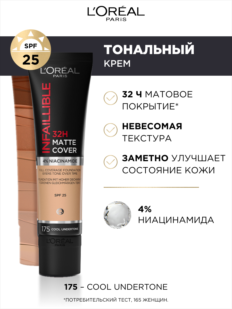 Отзывы на Лореаль Париж / L'Oreal Paris Infaillible - Тональный крем 32h-matte тон 175 Cool Undertone 30 мл