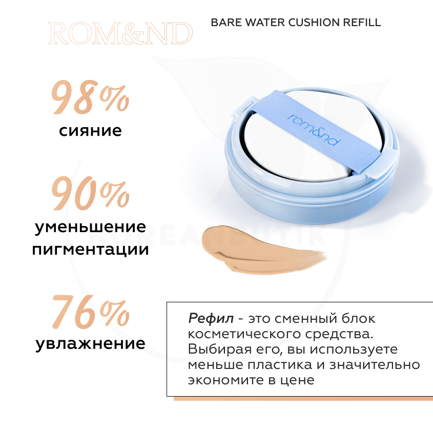 Рефил для кушона | ROM&ND Bare Water Cushion 03 Natural 21 Refill 20 мл 1 644 ₽