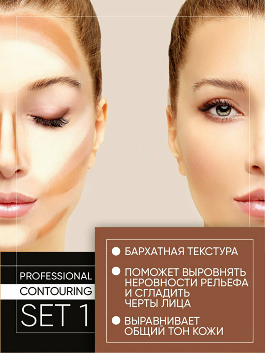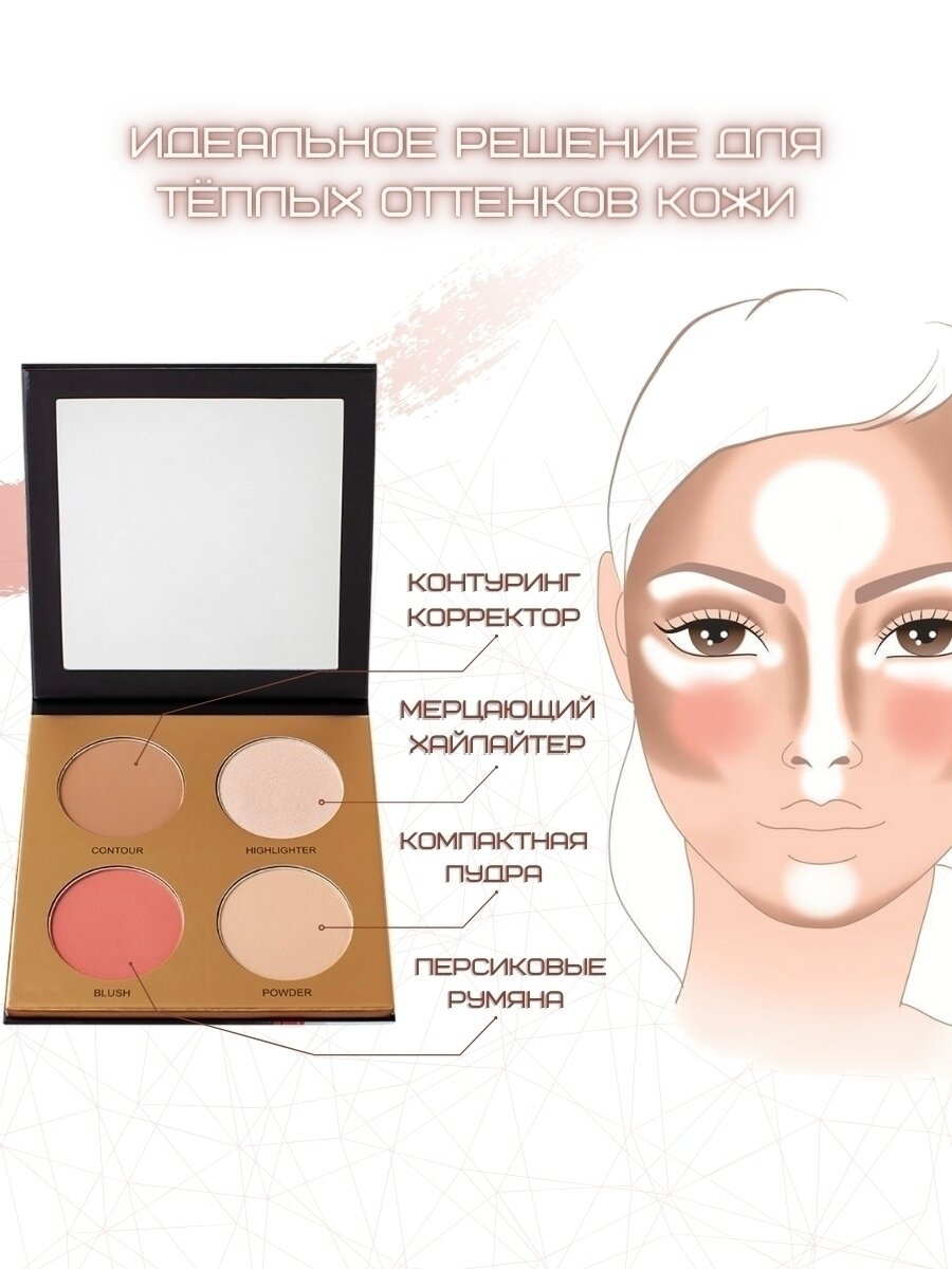 10 цен на Контуринг для лица тон №1 (Набор для макияжа: компактная пудра, румяна, хайлайтер сухой, корректор) скульптор палетка