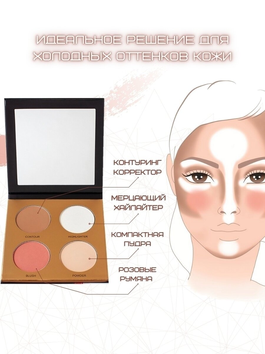 | Состав набора | пудра, румяна, скульптор, хайлайтер |