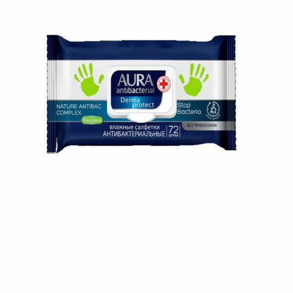 Салфетки влажные Aura Derma Protect, big-pack с крышкой, 15*20см, 72шт., антибакт. с ромашкой информация:
