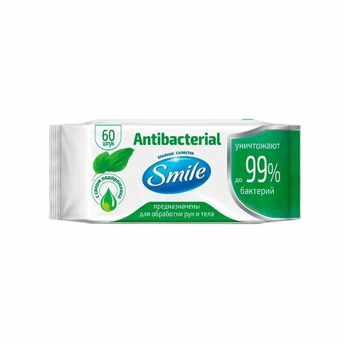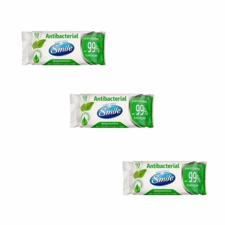 10 цен на Smile Влажные салфетки, Antibacterial, с соком подорожника, 60 шт/уп, 3 штуки