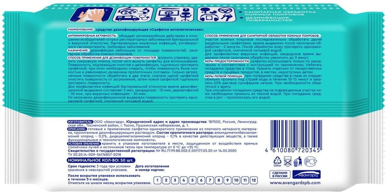 Влажные салфетки, антисептические, с пластиковым клапаном 50 шт. информация: