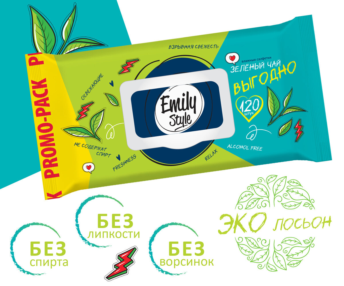 Отзывы на Влажные Салфетки Emily Style зеленый ЧАЙ выгодно 100+20 штук упаковка с клапаном (+20% бесплатно)