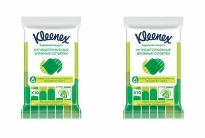 10 цен на Kleenex Салфетки влажные Антибактериальные, 10 штук в упаковке, 2 уп