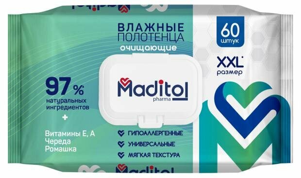 Полотенца влажные Maditol, 60 шт, очищающие, 14397 информация: