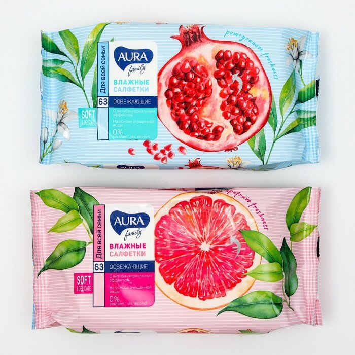 Влажные салфетки Aura, освежающие для всей семьи, 63 шт. информация:
