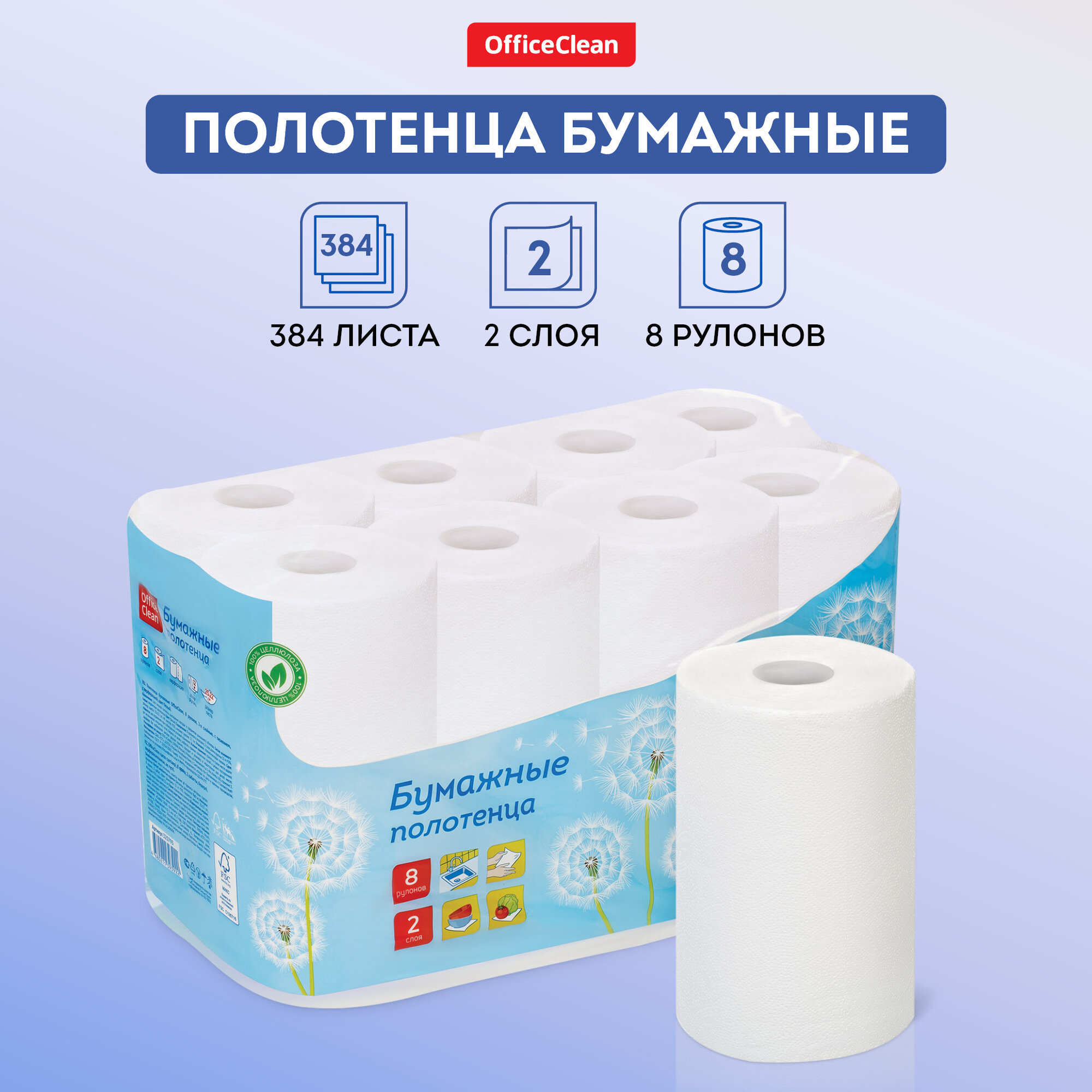 Отзывы на Бумажные полотенца в рулоне 12 метров с тиснением OfficeClean для дома кухонные / салфетки 2-слойные для лица белые / 8 рулонов