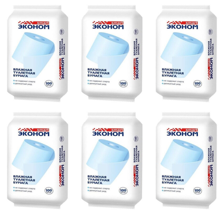 Влажная туалетная бумага Эконом smart № 100 Деликатный уход 100 листов, 6 упак информация: