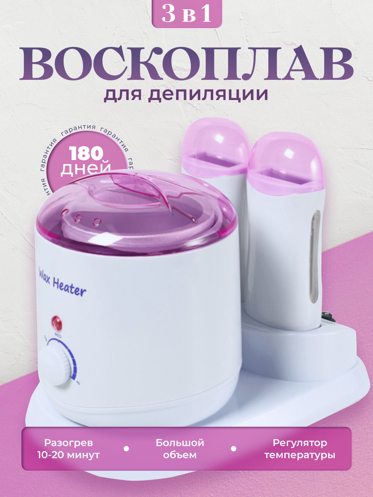 | В комплекте | База-1шт. Воскоплав баночный-1шт. Два воскоплава картриджных по 100 мл. Инструкция. Коробка |