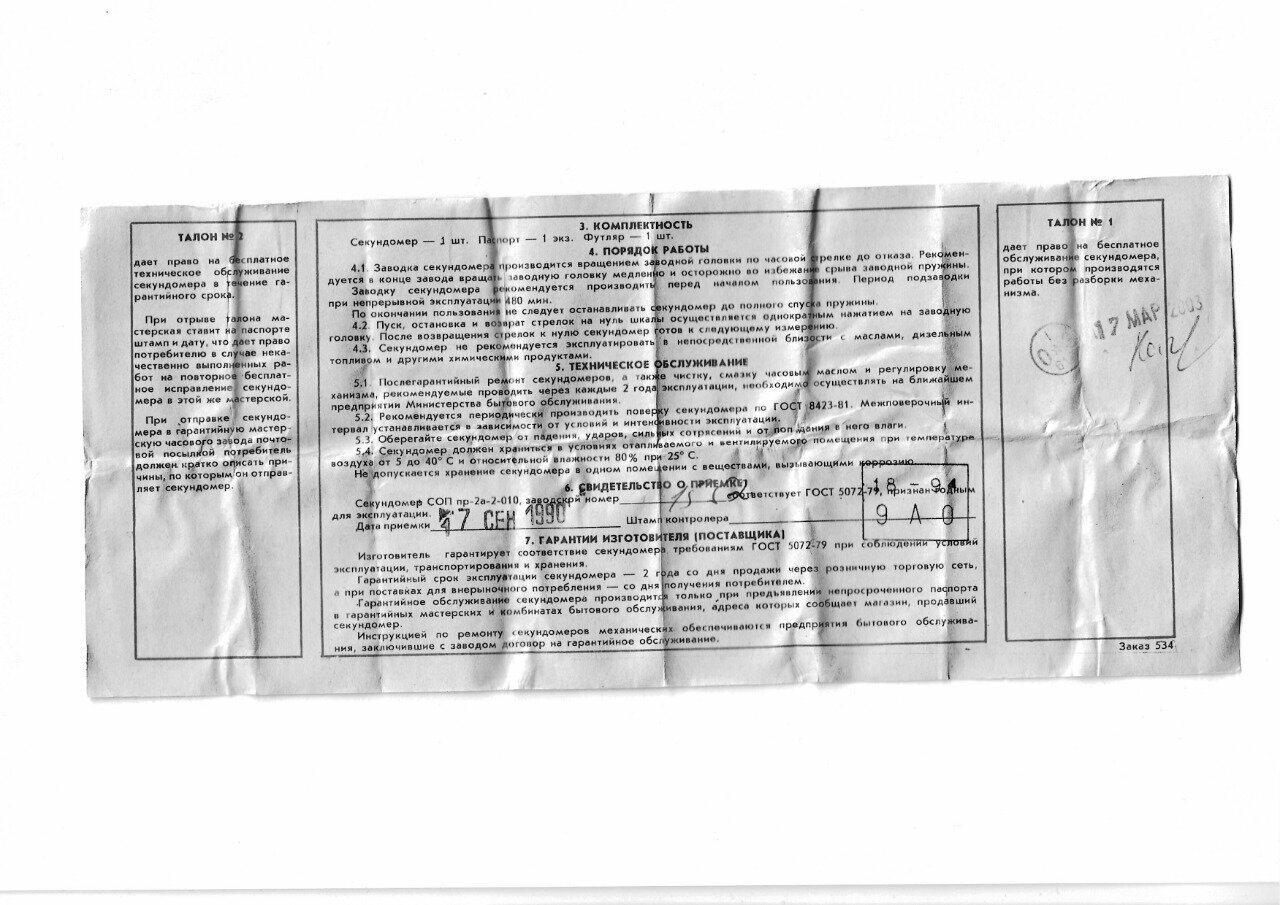 Секундомер "Агат" 4282Н Соп пр-2а-2-010 Год выпуска 1990 информация: