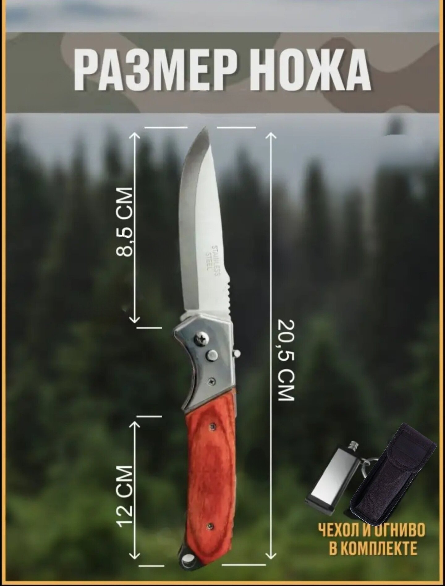 Отзывы на Складной автоматический нож туристический , походный Pirat в чехле , вечная спичка