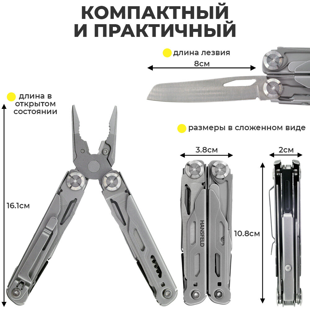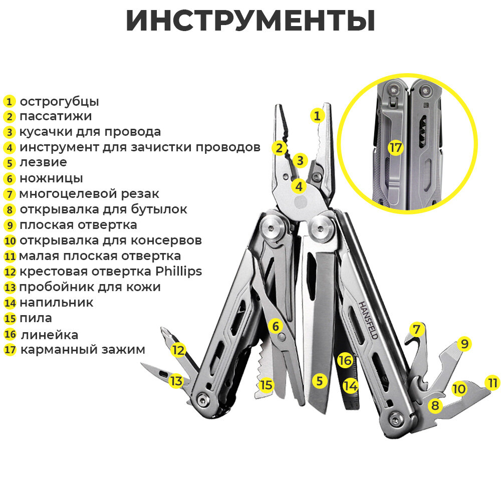 Мультитул HANSFELD 17 инструментов, тактический, походный, туристический, с набором бит и чехлом информация: