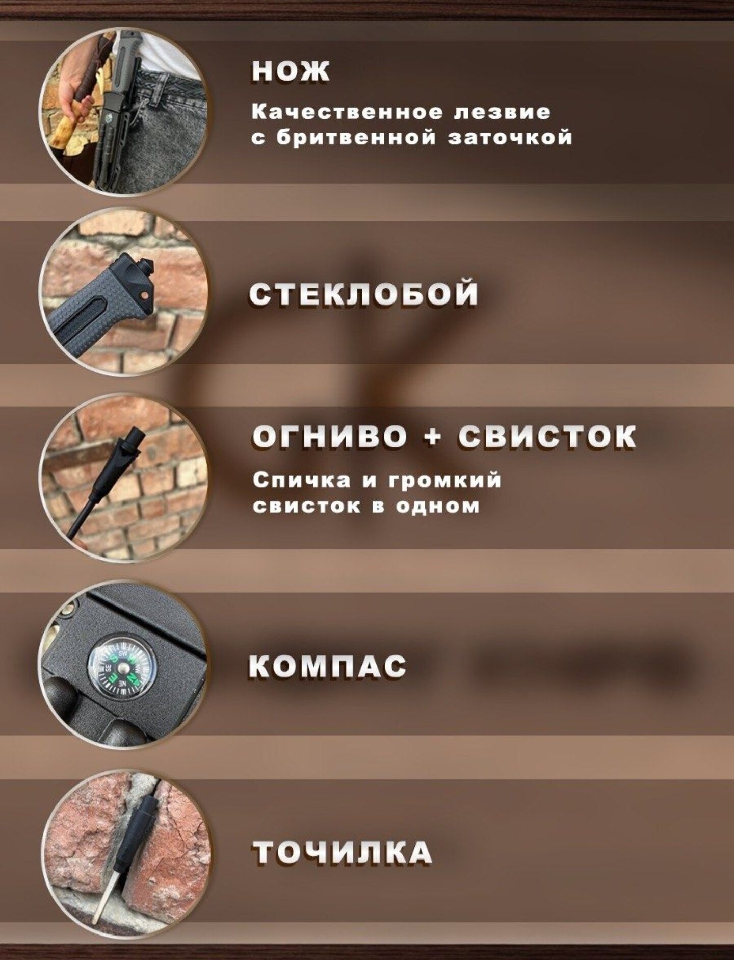 0 отзывов, средняя оценка 0. Чтобы купить «Нож тактический Columbia 4058В (компас, огниво, свисток, точилка) ручка темная» по лучшей цене мы сканируем авито, алиэкспресс, маркет, озон, савеловский, плеер, горбушку, беру, официальные сайты и находим минимальную. Администрация не несет ответсвенность актуальность цен на Нож тактический Columbia 4058В (компас, огниво, свисток, точилка) ручка темная, более подробно узнавайте на сайте магазина.