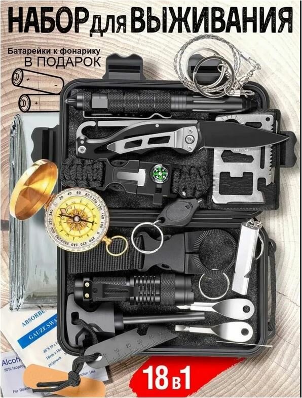 Тактический набор 18 в 1 для выживания, туристический набор для выживания, набор для выживания на охоту информация: