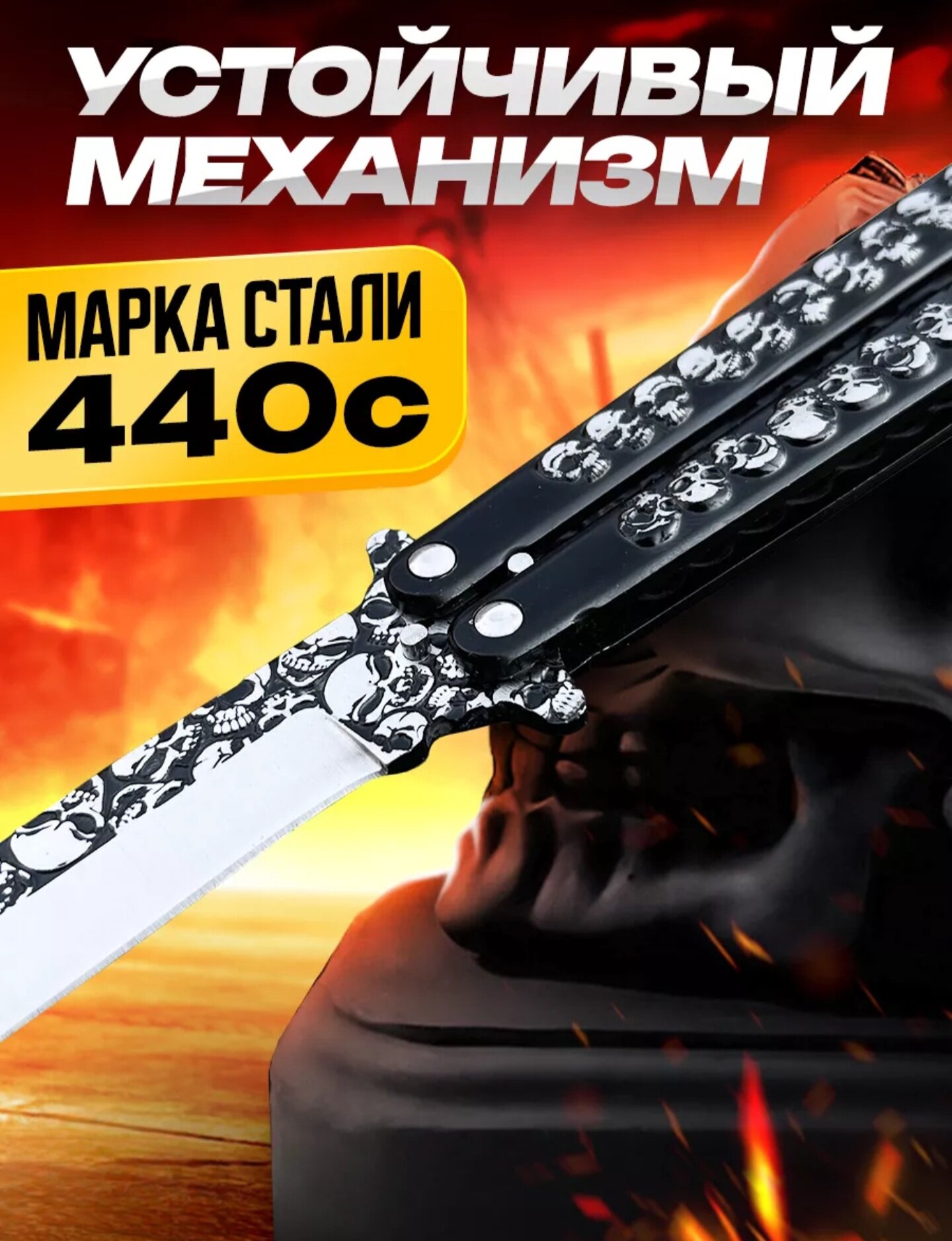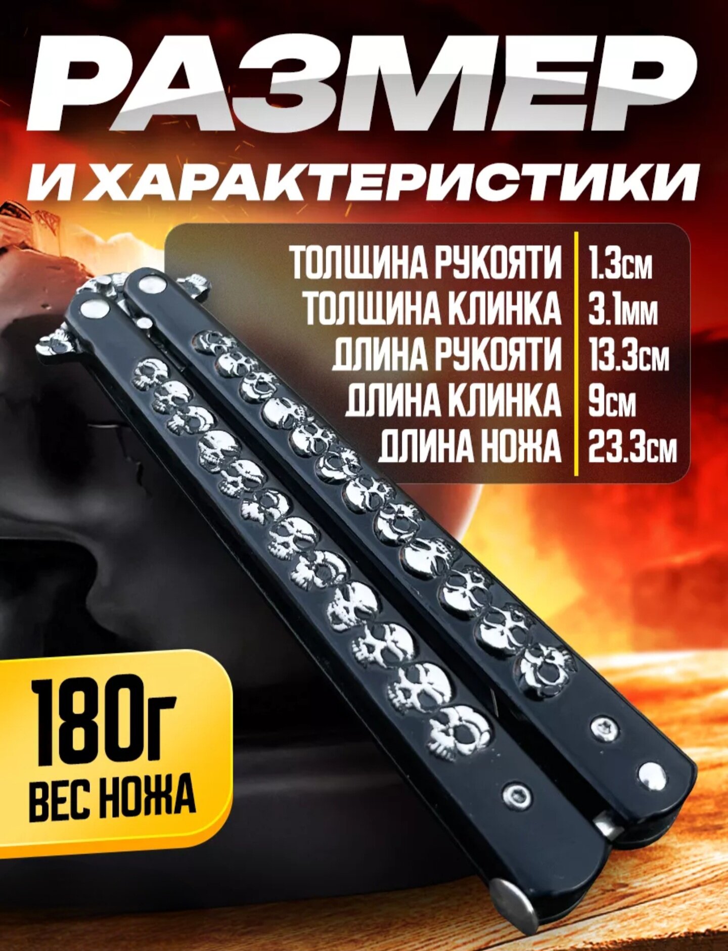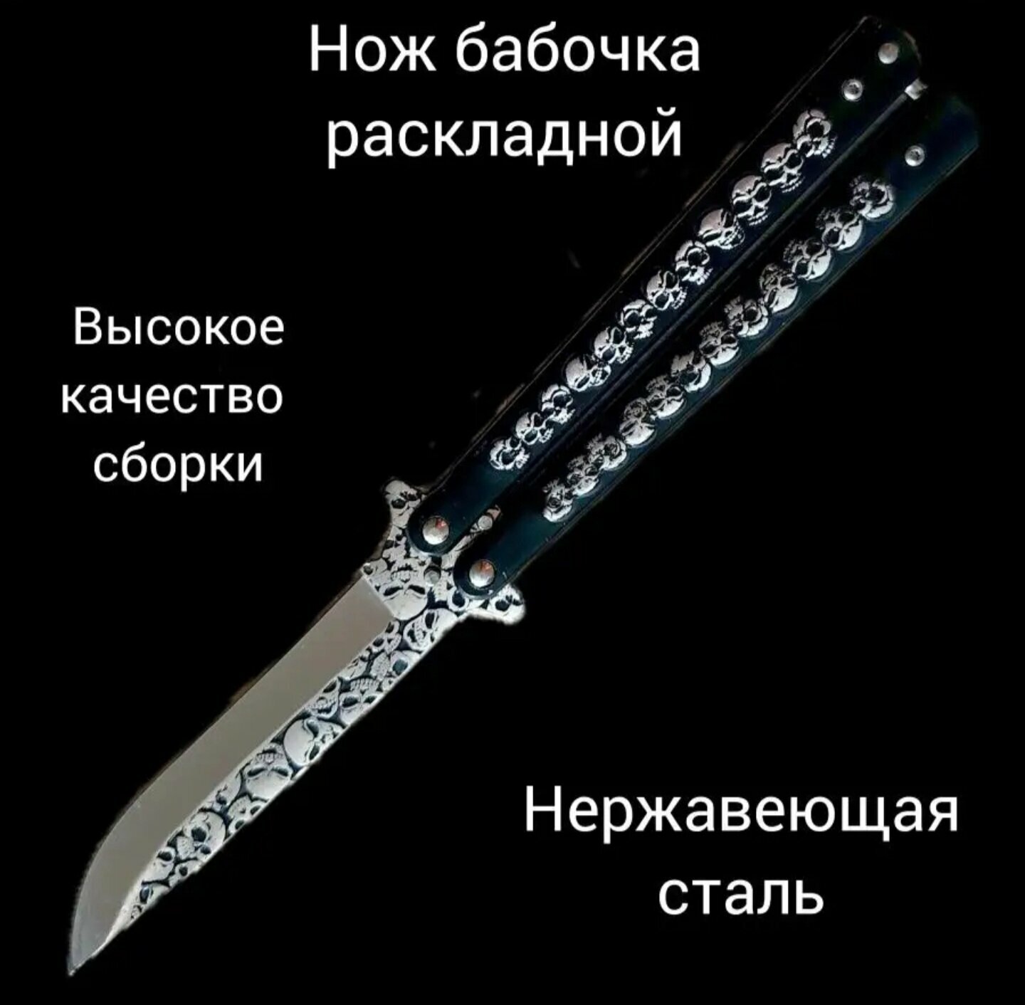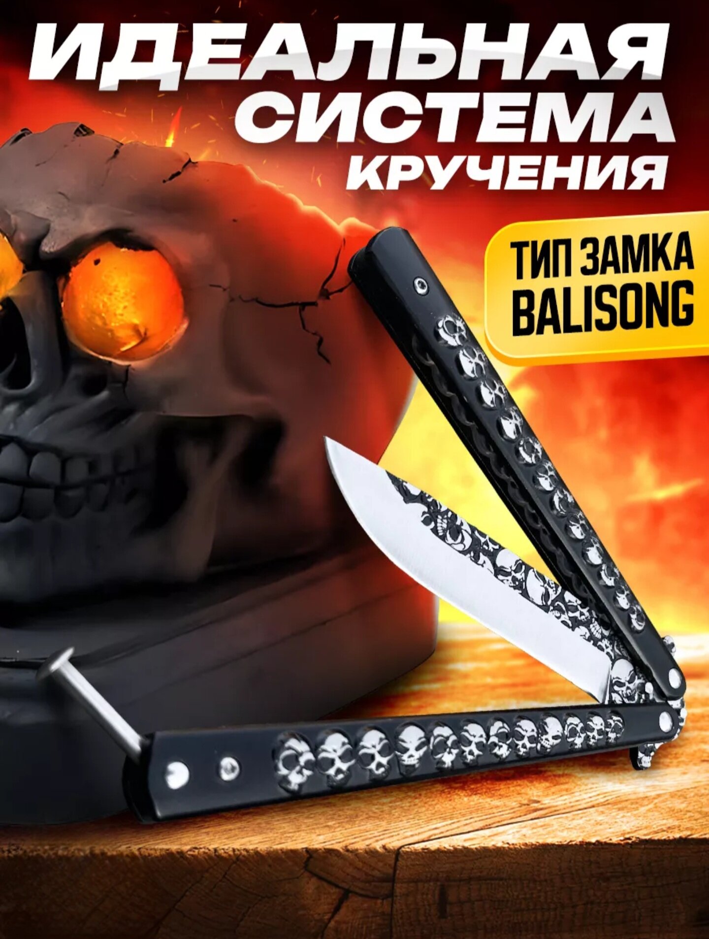 Отзывы на Нож бабочка балисонг складной нож металлический черный череп (в том числе как тренировочный)