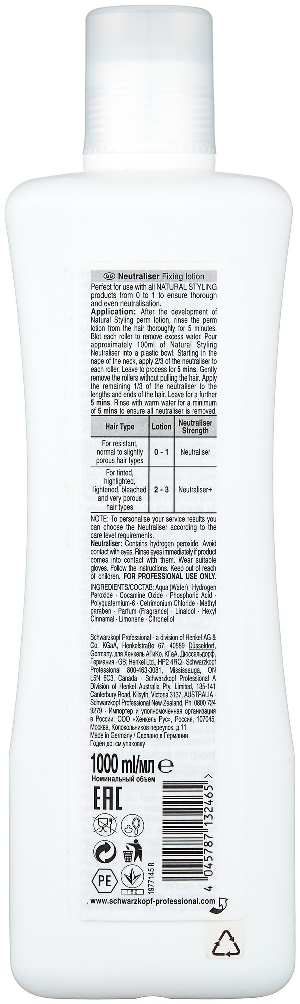 NATURAL STYLING Нейтрализатор для стойкого результата и ухода за волосами, 1000 мл информация: