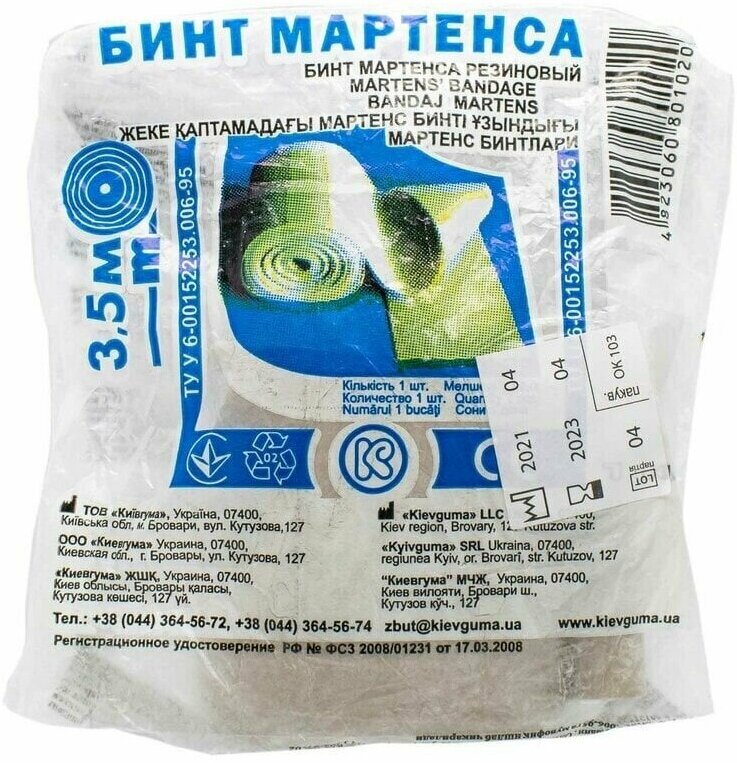 Бинт мартенса резиновый 3,5м Киевгума информация: