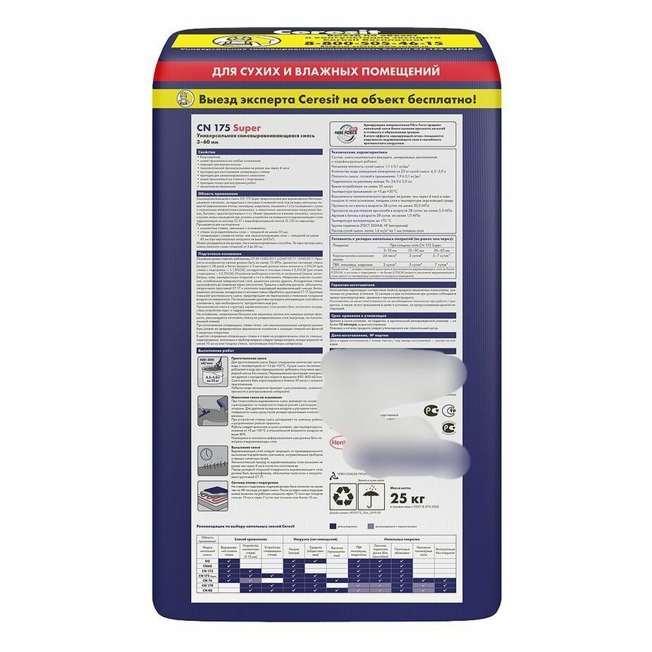 Ровнитель (наливной пол) универсальный Церезит CN 175 Super самовыравнивающийся 25 кг информация: