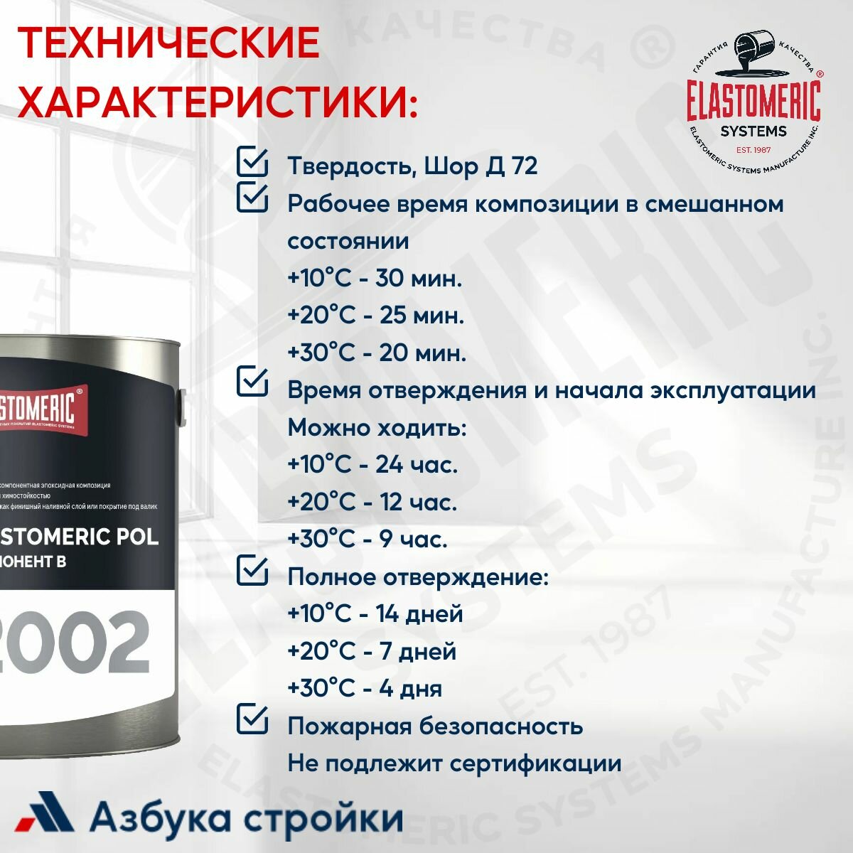 10 цен на Наливной пол ELASTOMERIC POL 2002, 20 кг (16+4 кг) - двухкомпонентная цветная эпоксидная химостойкая композиция с особой прочностью, темно-серый