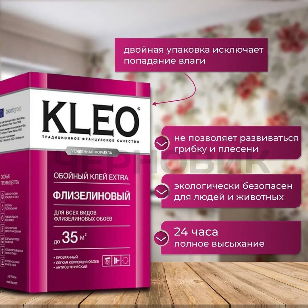 Комплект Клей для обоев KLEO EXTRA 35 усиленная формула + Клей для стыков обоев KLEO STRONG 80 усиленная формула информация: