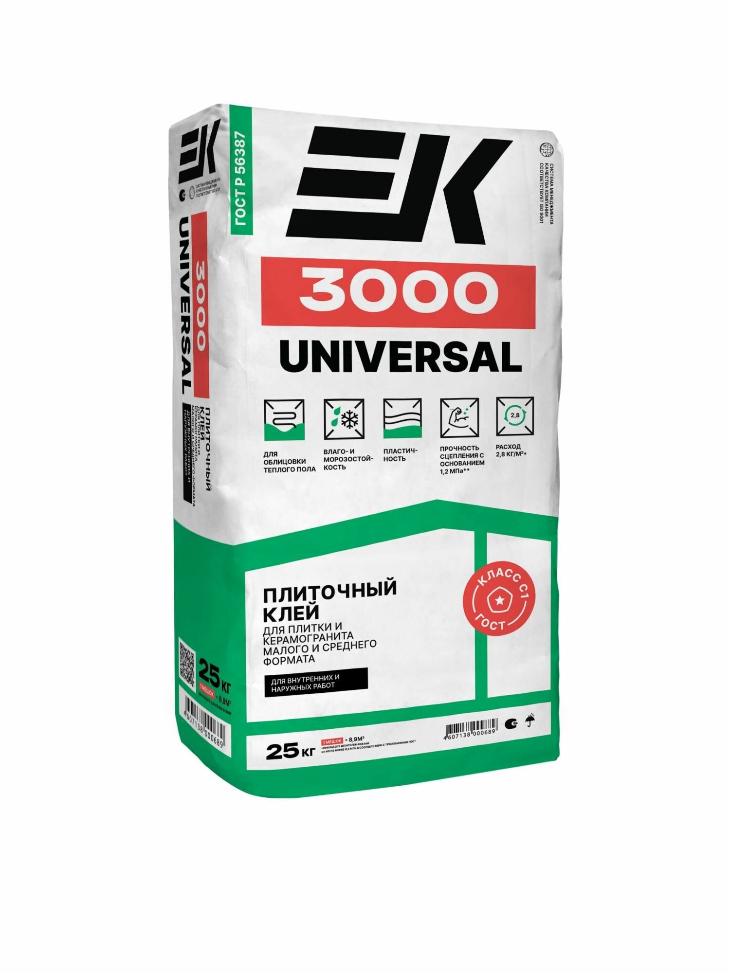Клей для плитки и керамогранита EK 3000 UNIVERSAL, 25 кг информация: