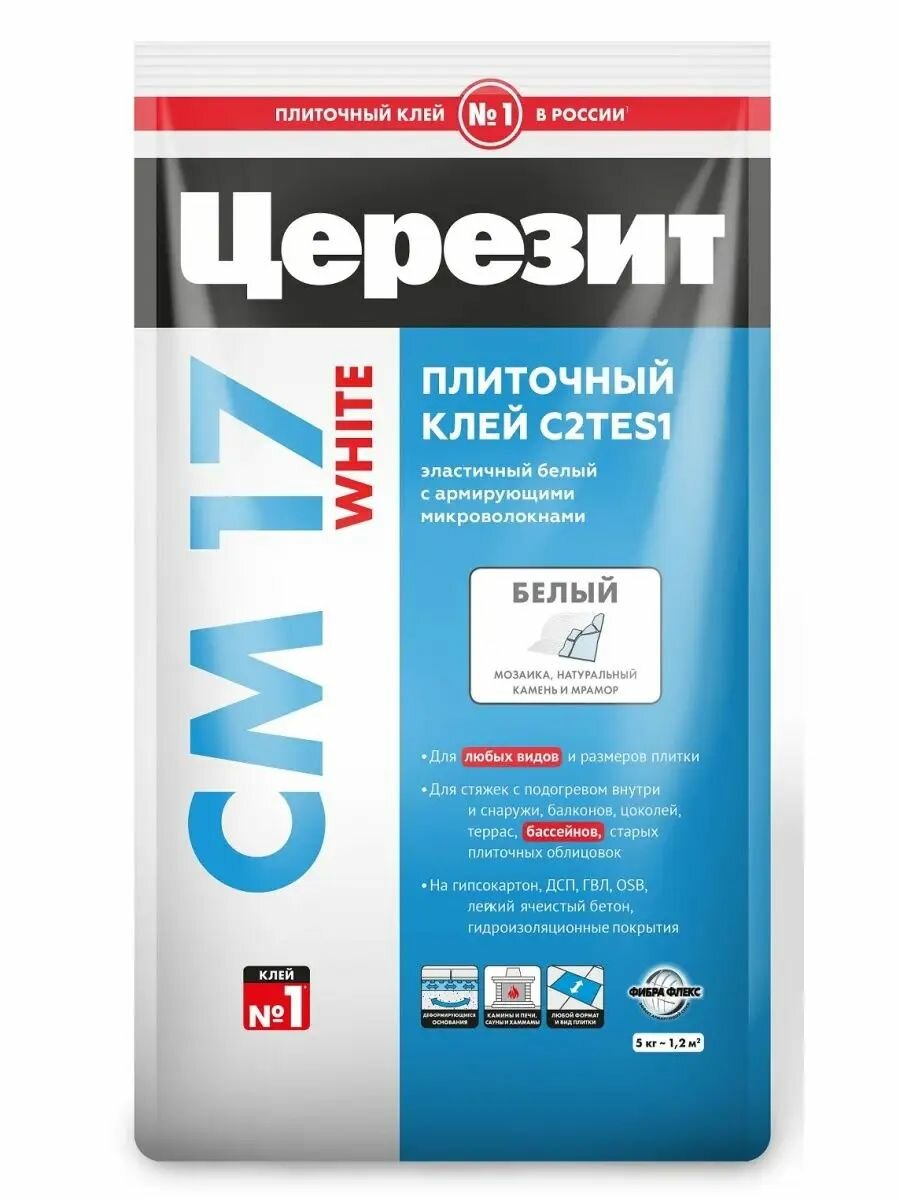 Клей СМ17 для мрам. плитки и мозайки, цв. белый, церезит - 5 кг. информация:
