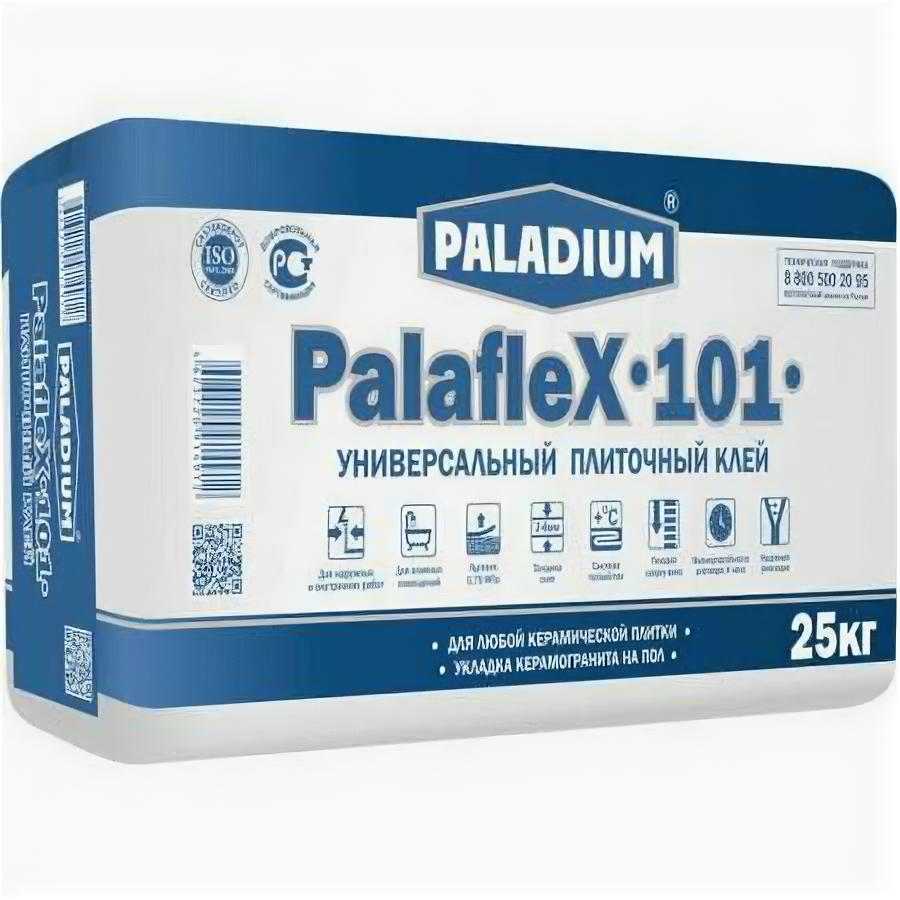Клей плиточный PALADIUM универсальный PalafleX-101 25кг 0,75МПа, в т.ч. керамогранит на пол 54 (1шт) (96190) информация: