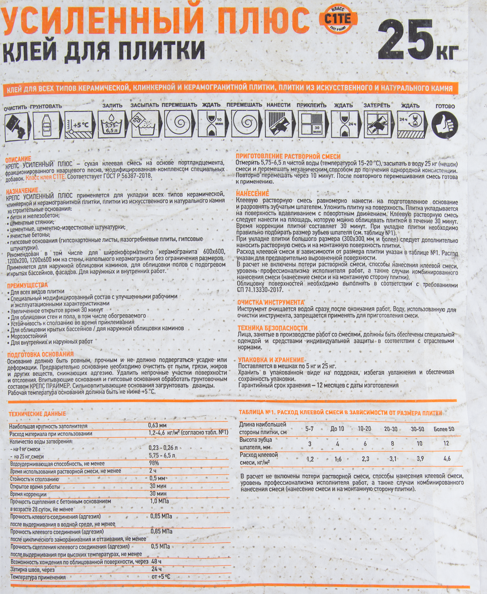 Клей для керамогранита Крепс Усиленный Плюс 25 кг информация: