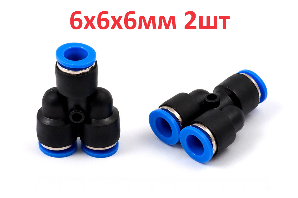 Отзывы на 2шт - Фитинг Y-образный 6х6x6мм пневматический быстроразъемный(цанговый) пластиковый