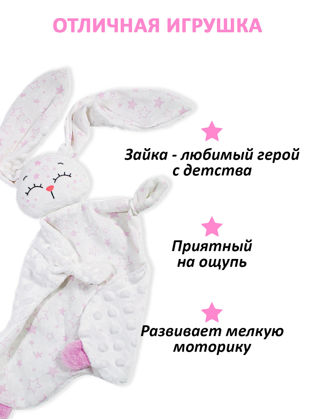 10 цен на Штучки, к которым тянутся ручки / Комфортер для новорожденных Звездный зайчик, розовый 0+