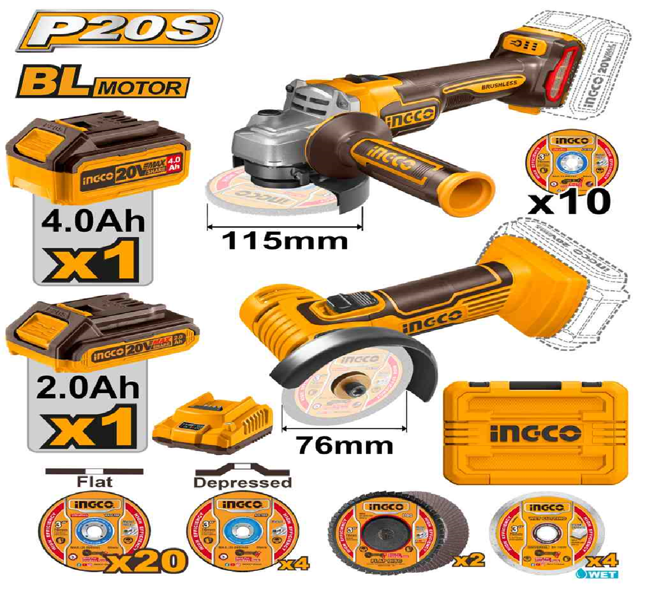 Набор аккумуляторного инструмента УШМ и УШМ-мини INGCO COSLI23120215 INDUSTRIAL 20 В информация: