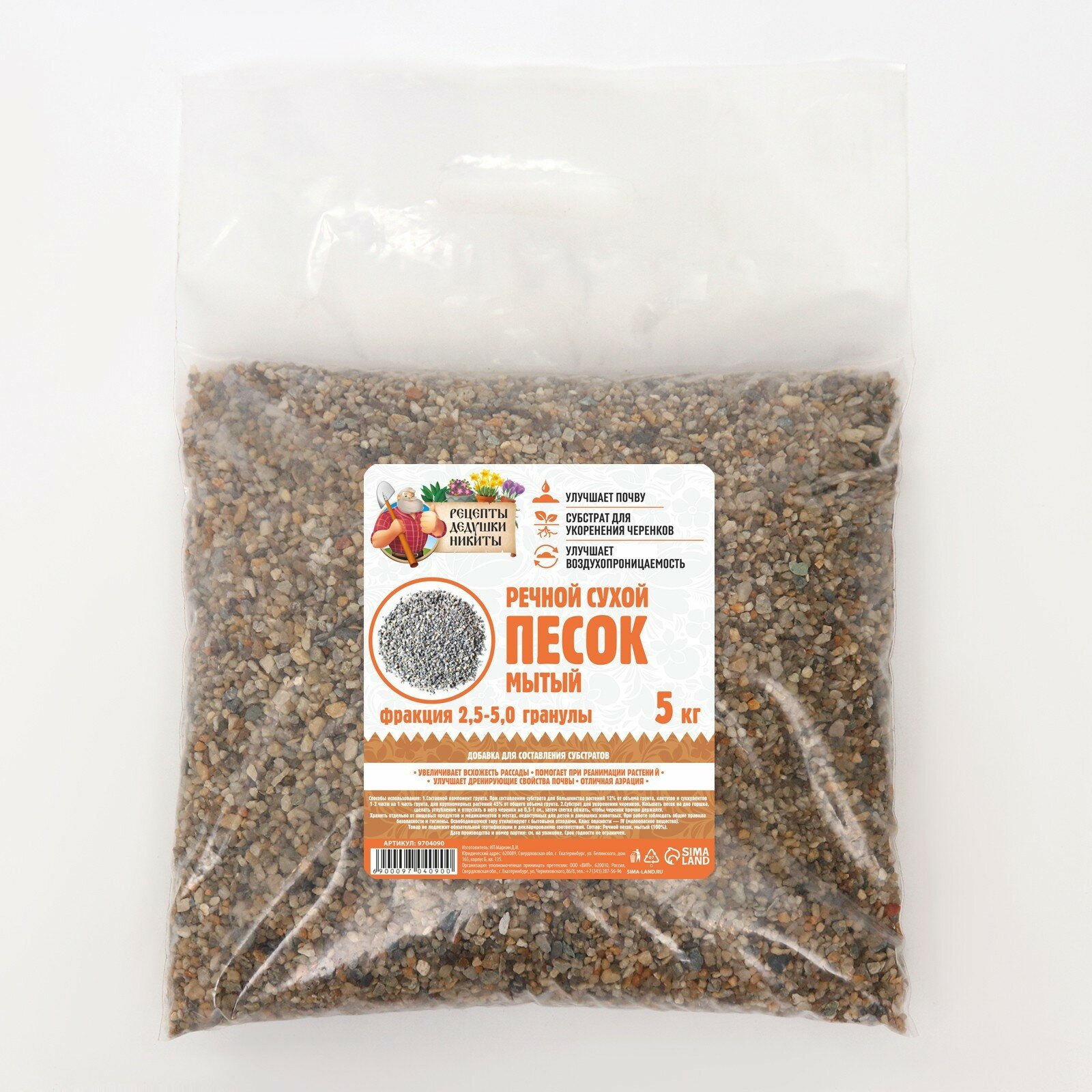 Речной песок "Рецепты дедушки Никиты", сухой, фр 2,5-5,0, гранулы, 5 кг информация: