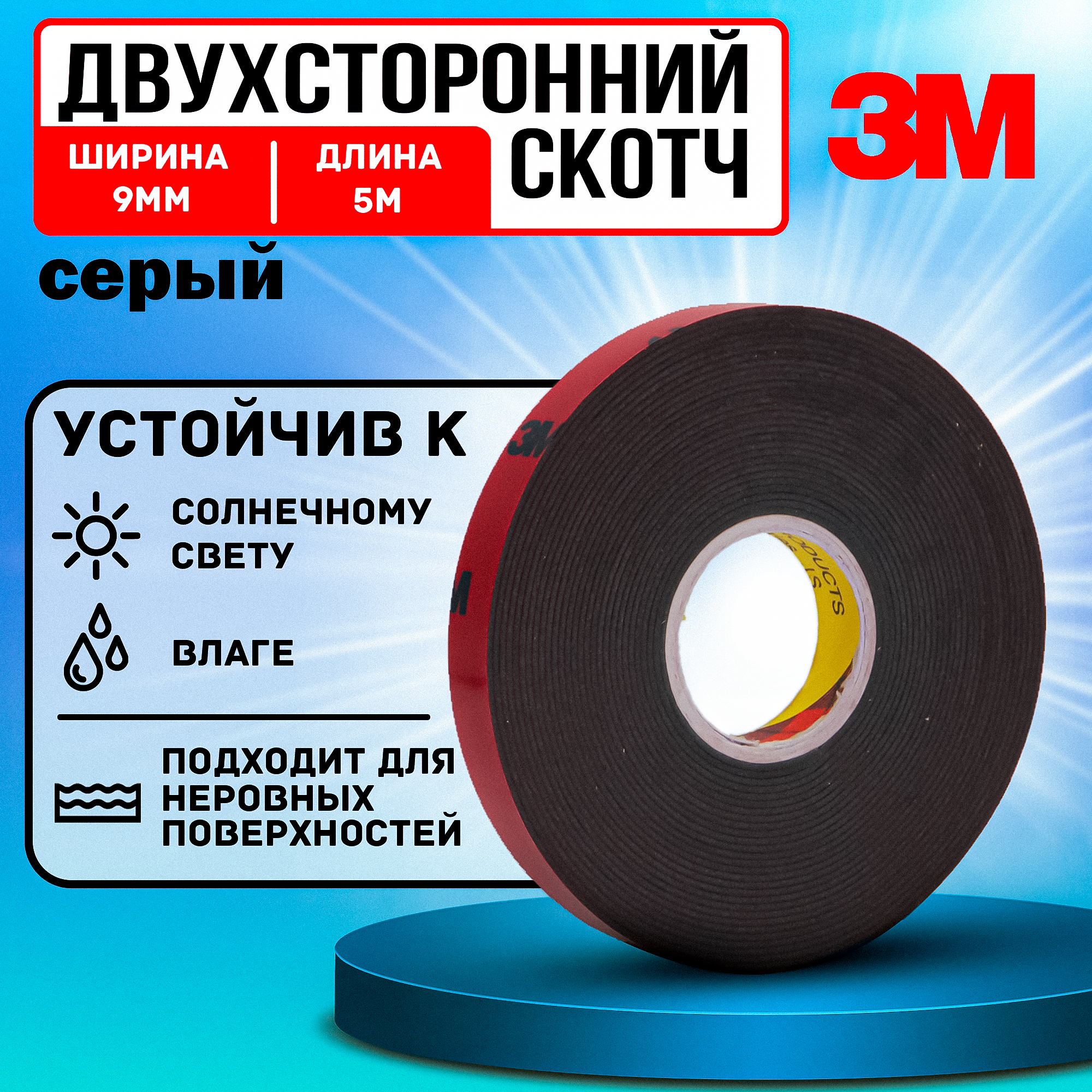 Скотч 2-х сторонний 9мм*5м 3М информация: