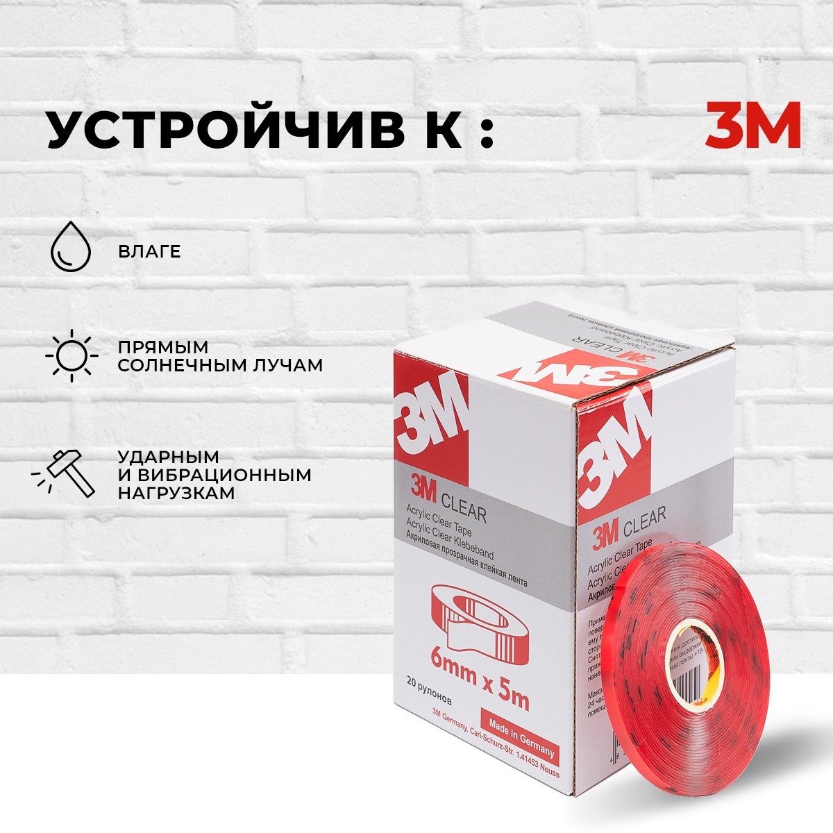 Скотч двухсторонний 3М 6мм*5м 196 ₽