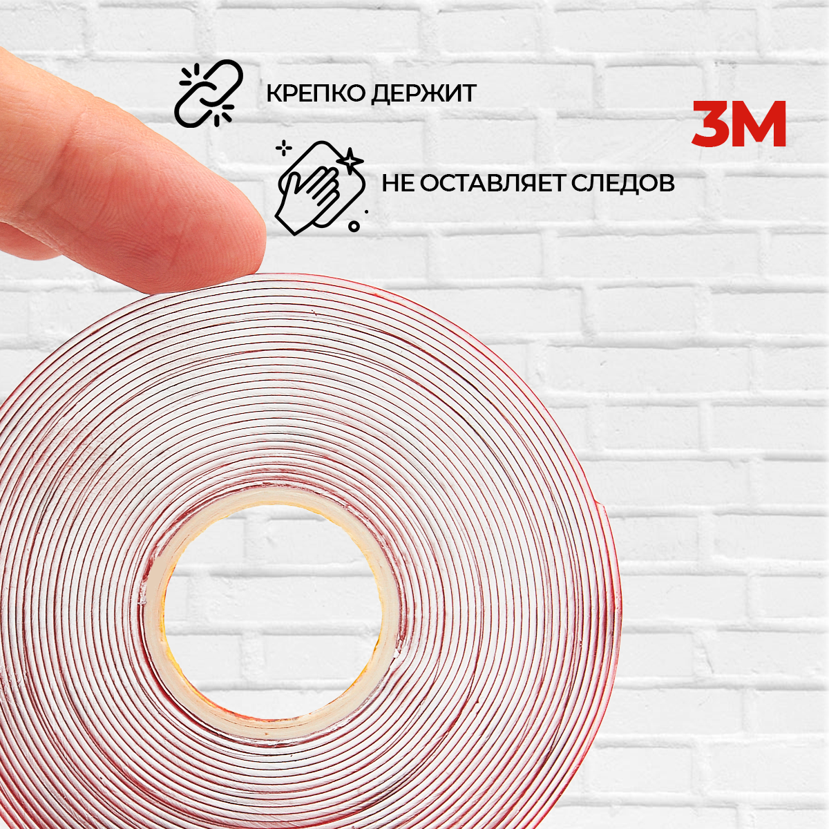 Двусторонний скотч акриловый, клейкая лента 3М прозрачная, многоразовая 8мм*5м, отличная фиксация 250 ₽