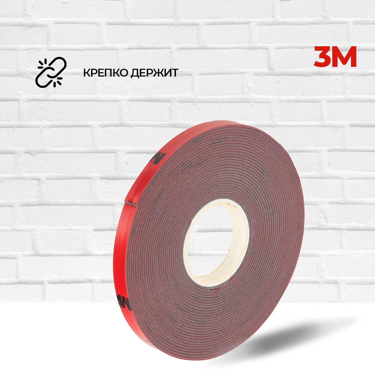 Скотч двухсторонний “3М”, 10мм Х 3метра, пеноакриловая лента, 3шт.