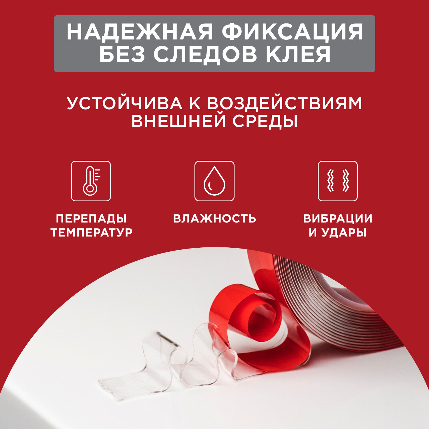 Двусторонняя прозрачная клейкая лента REXANT на акриловой основе 5 м, ширина 12 мм, толщина 0.8 мм