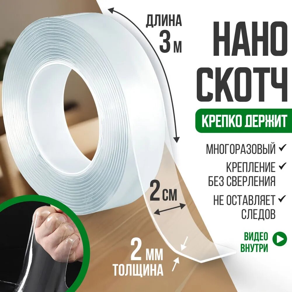Отзывы на Нано-скотч крепежный 2мм*20мм*3м, суперклейкая двухсторонняя многоразовая лента