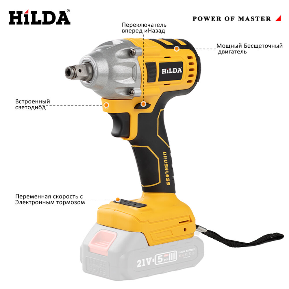 HiLDA Гайковерт электрический /Винтоверт аккумуляторный ударный бесщеточный ,Электрический гаечный ключСодержитБатарея 21В информация:
