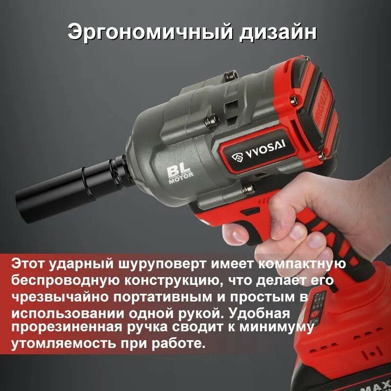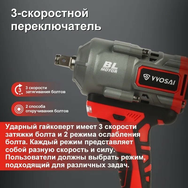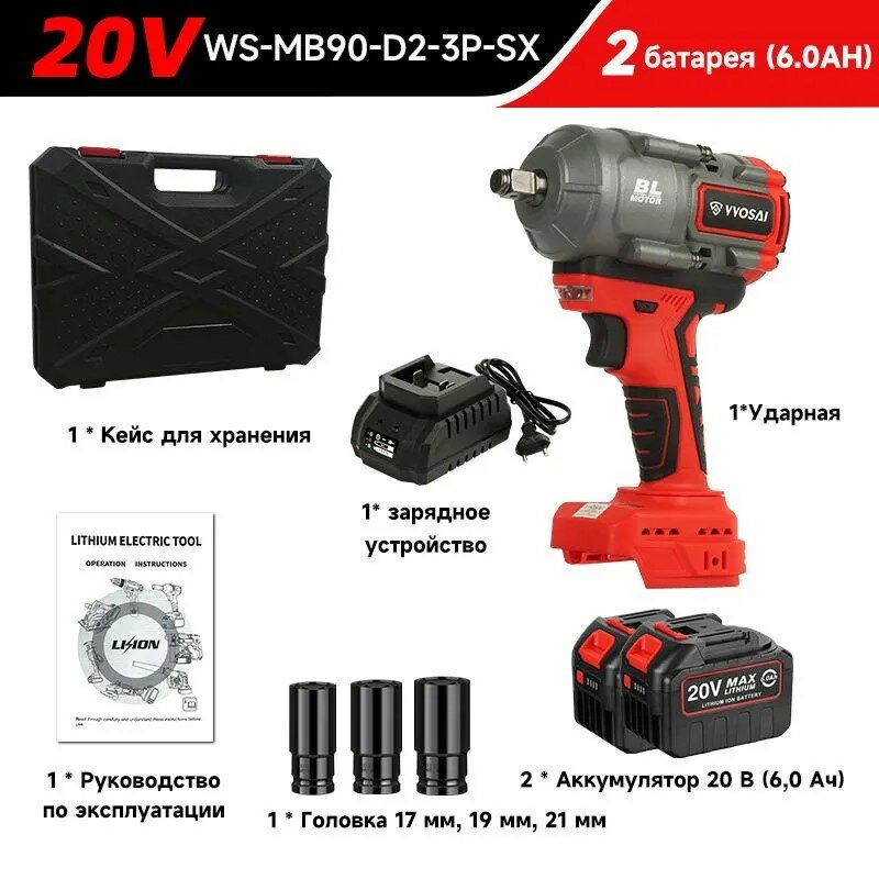 Отзывы на Гайковерт аккумуляторный с кейсом WOSAI WS-MB90 1200 Н*м, 20V, 4.0AH 1 аккумулятор