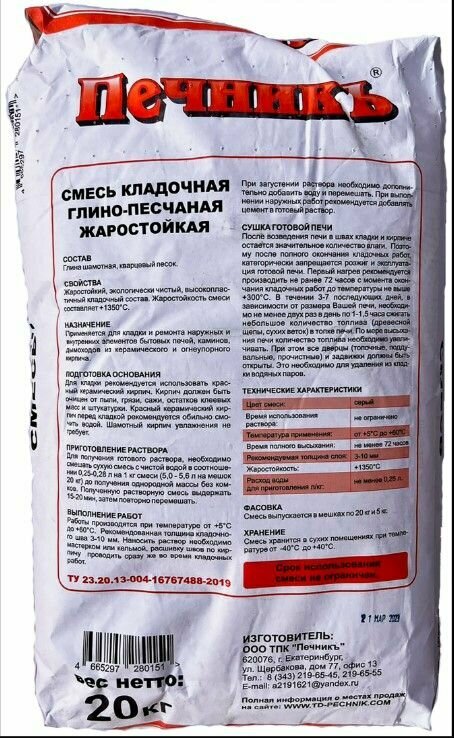 Отзывы на Смесь кладочная глино-песчаная жаростойкая "Печникъ" 20 кг, серый цвет
