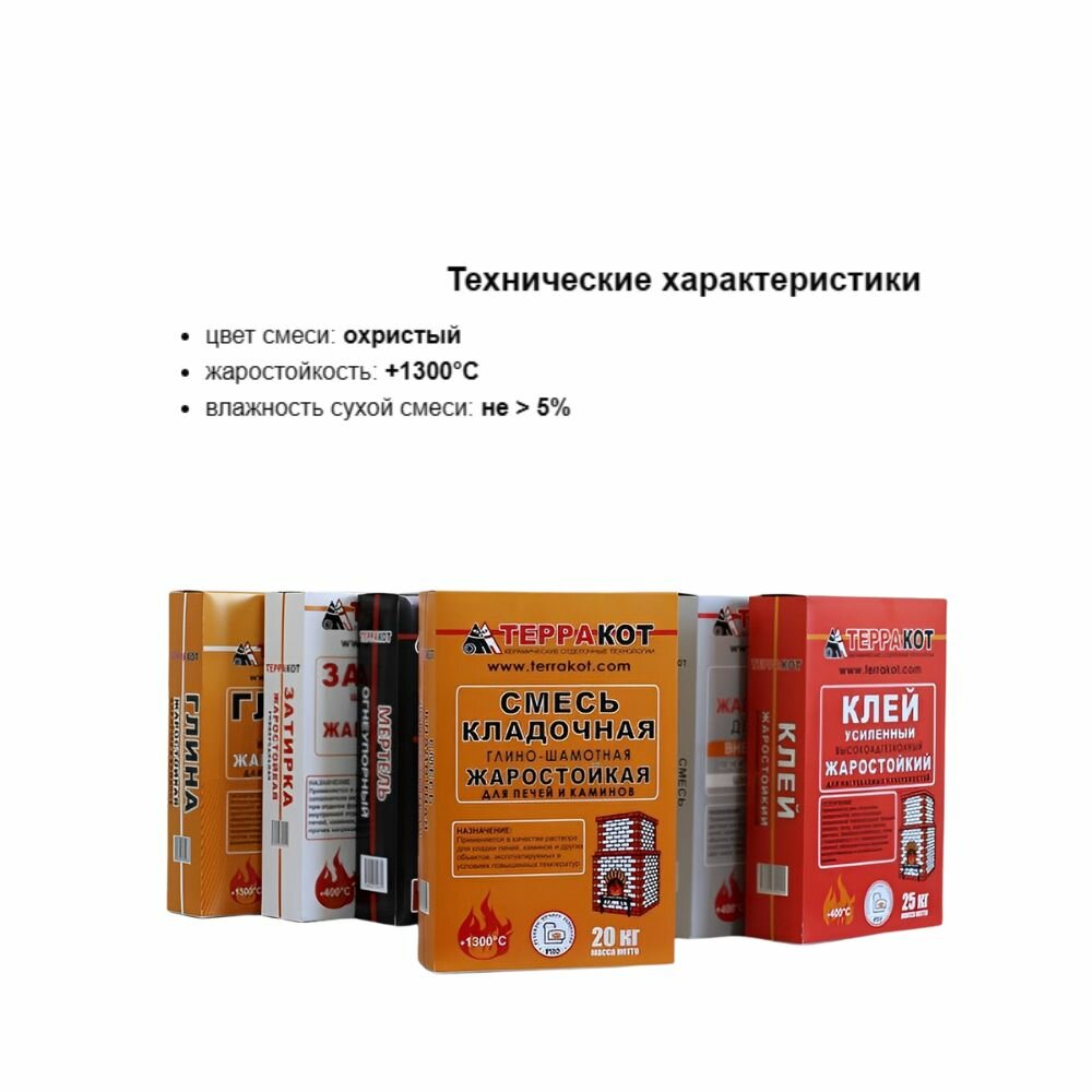 Терракот раствор кладочный огнеупорный для печей и каминов (5кг) / TERRAKOT смесь кладочная жаростойкая глино-шамотная для печей и каминов (5кг)